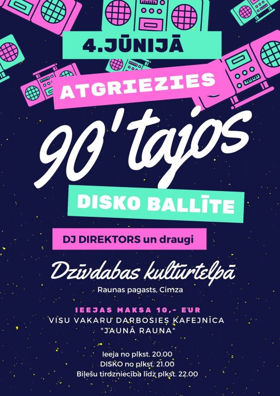 Disko ballē būs iespēja atgriezīsies 30 gadus senajā pagātnē un baudīt deviņdesmito gadu mūziku un atmosfēru.