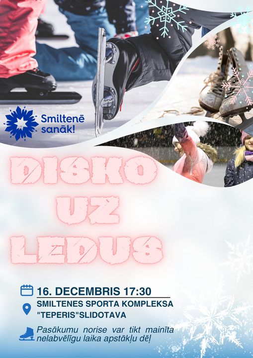 Piektdienas vakarpusē notiks pasākums “Disco uz ledus”, kur mūzikas un gaismu pavadībā varēs pasportot, padziedāt, parunāt un vienkārši jauki pavadīt vakaru svaigā gaisā. Ja vēlaties kāpt uz ledus, tad būs nepieciešamas slidas, bet pēc tam un atpūtas brīžos ir vērts padomāt par kāda karsta dzēriena līdzņemšanu.
