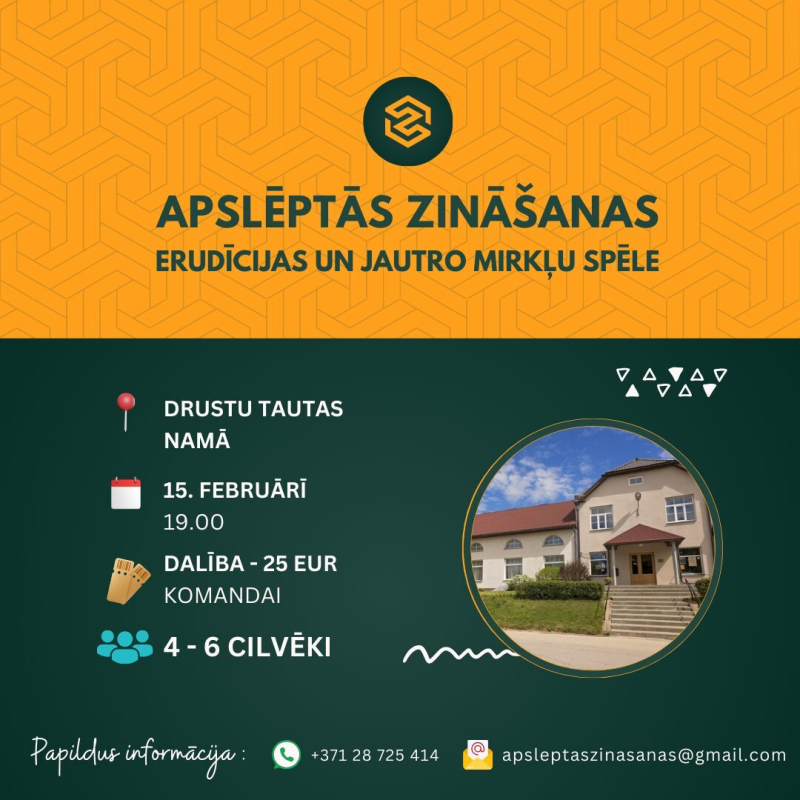 15. februārī aicinām uz komandu spēli DRUSTOS.