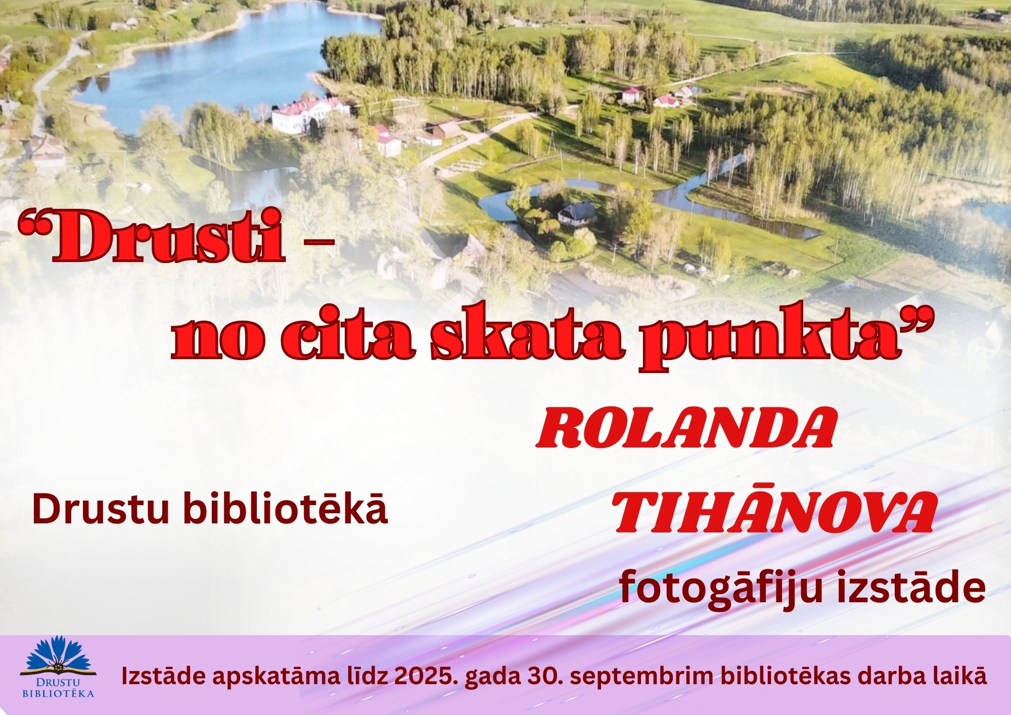 Līdz 2025. gada 30. septembrim Drustu bibliotēkā apskatāma fotogrāfiju izstāde “Drusti – no cita skata punkta”. Fotogrāfiju autors ir drustēnietis Rolands Tihānovs, kuram fotografēšana ir hobijs jau vairāku gadu garumā.
