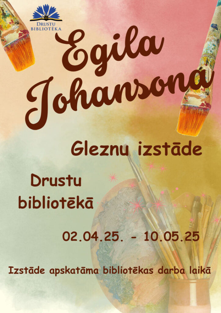 Drustu bibliotēkā Egila Johansona gleznu izstāde