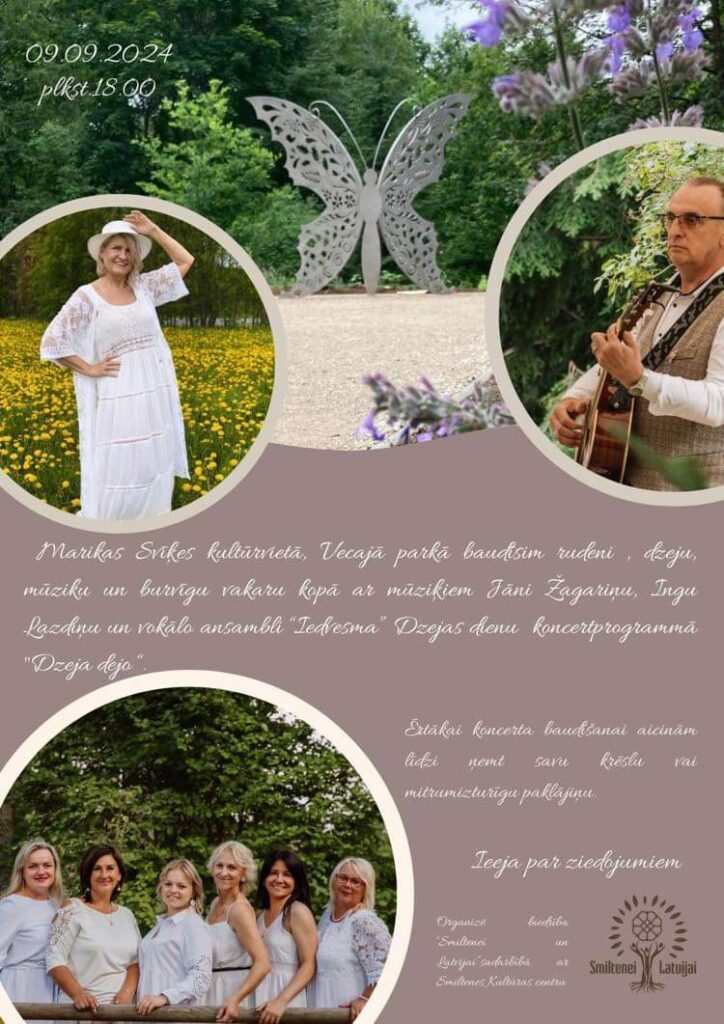 Šogad tā notiks 9. septembrī plkst. 18.00. Koncertā piedalīsies mūziķi Jānis Žagariņš, Inga Lazdiņa un vokālais ansamblis “Iedvesma”.