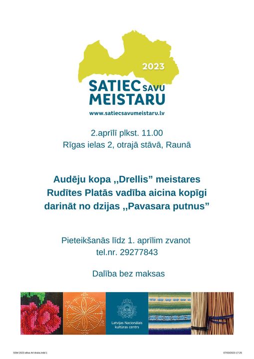 No 2023. gada 31. marta līdz 2. aprīlim visā Latvijā norisināsies pasākums “Satiec savu meistaru!”.