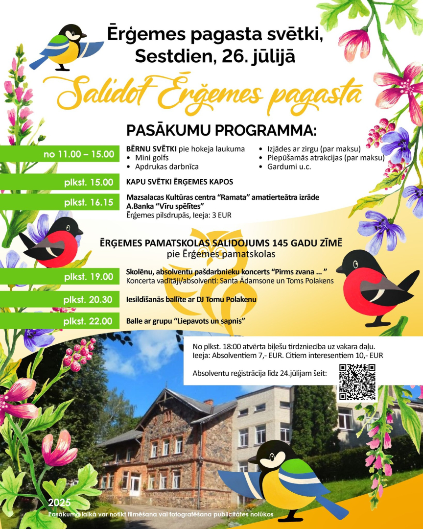 Svinēsim kopā Ērģemes pamatskolas 145 gadu jubileju un pagasta svētkus!