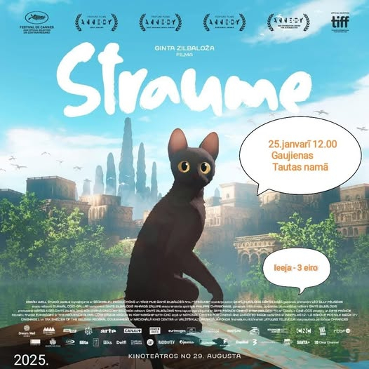 Ar prieku paziņojam, ka “Zelta globusu” ieguvusī animācijas filma “Straume” atkārtoti būs skatāma 25. janvārī plkst. 12.00 Gaujienas Tautas namā.