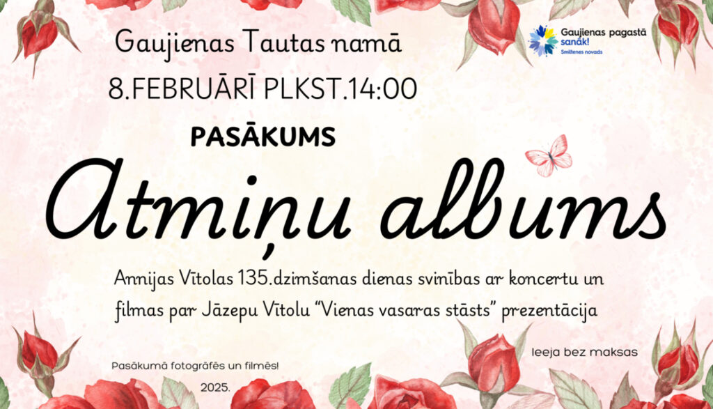 8. februārī pulksten.14.00 Gaujienas Tautas namā pasākums “Atmiņu albums”.