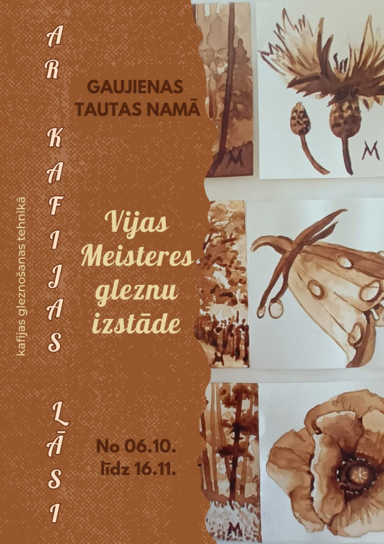 No 6. oktobra līdz 16. novembrim Gaujienas Tautas nama mazajā zālē Vijas Meisteres gleznu izstāde “Ar kafijas lāsi” kafijas gleznošanas tehnikā.