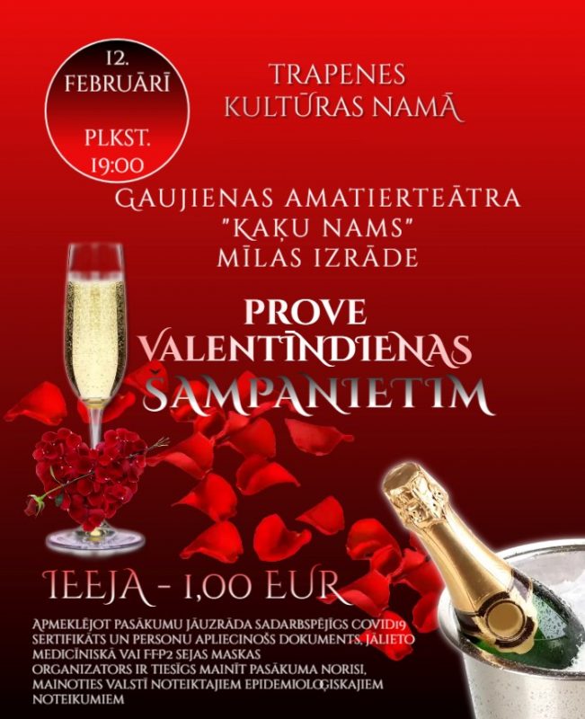 12.februārī pulksten 19:00 Trapenes kultūras namā viesosies Gaujienas amatierteātris “Kaķu nams” ar mīlas izrādi “Prove Valentīndienas šampanietim”