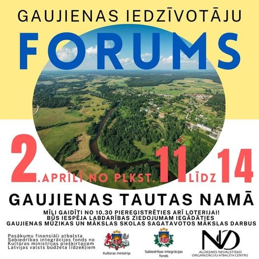 2.aprīlī no 11.00 līdz 14.00 Gaujienas Tautas namā norisināsies Gaujienas iedzīvotāju forums.