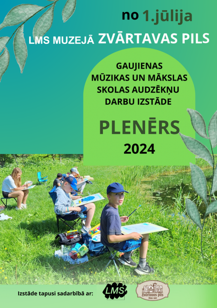 Latvijas Mākslinieku savienības (LMS) muzejā “Zvārtavas pils” no 1.jūlija izstādē “Plenērs 2024” būs apskatāmi Gaujienas mūzikas un mākslas skolas (GMMS) vizuāli plastiskās mākslas programmas audzēkņu darbi un skices. Izstāde tapusi LMS un GMMS sadarbības projekta ietvaros.