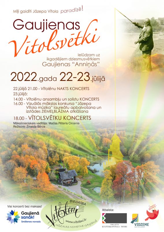 23.jūlijā plkst. 14.00 Vītolēnu ansambļu un solistu koncerts, 16.00 Vizuālās māksla konkursa ‘’Jāzepa Vītola mūzika’’ laureātu apbalvošana un izstādes “Ziemeļblāzma” atklāšana, 18.00 Gaujienas Vītolsvētku koncerts.