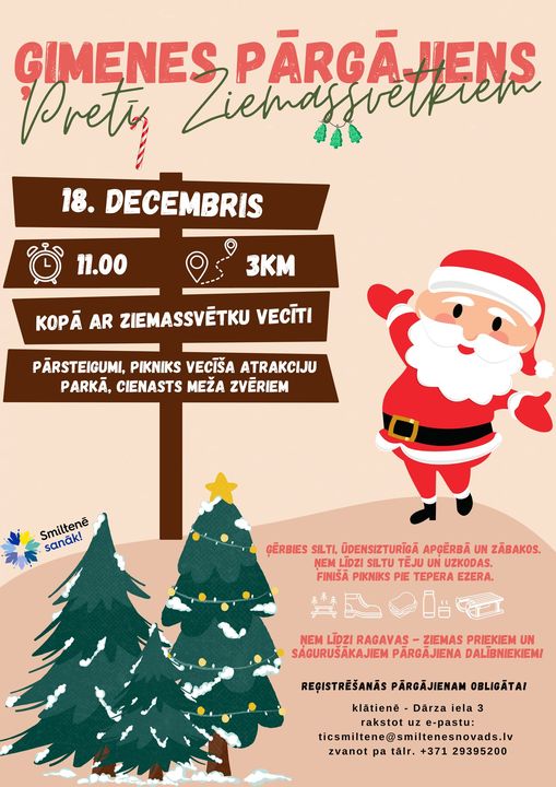 18.decembrī, kas iekrīt ceturtajā adventē, aicinām uz ģimeņu pārgājienu, kur nelielas pastaigas laikā, satiksim Ziemassvētku vecīti, meklēsim pārsteigumus un baudīsim pikniku atrakciju parkā.