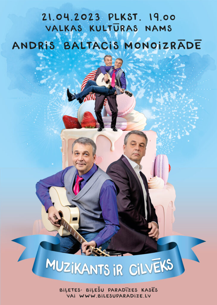 Piektdien, 21. aprīlī plkst. 19.00 Valkas pilsētas kultūras nama lielajā zālē (Emīla Dārziņa ielā 8, Valkā) grupas “Baltie lāči” solista Andra Baltača monoizrāde – “Muzikants ir cilvēks”.
