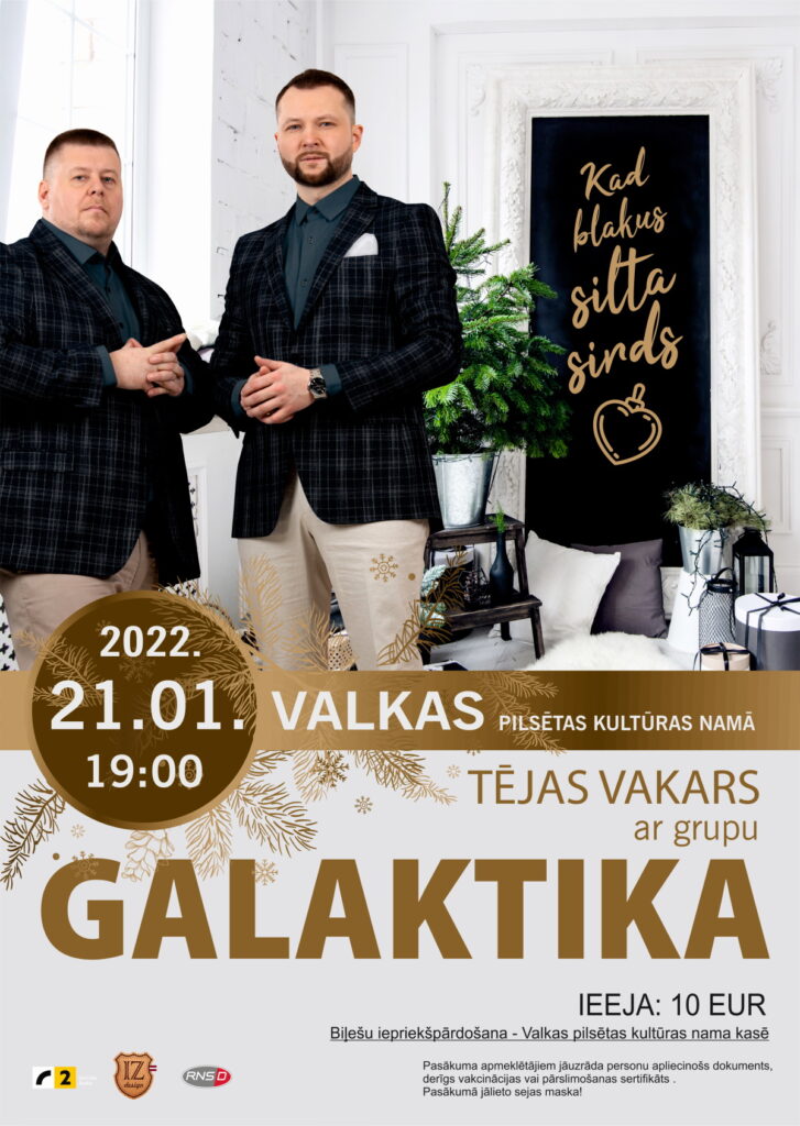 Piektdien, 21. janvārī, plkst. 19.00 Valkas pilsētas kultūras namā koncertprogramma “Tējas vakars ar grupu Galaktika”.