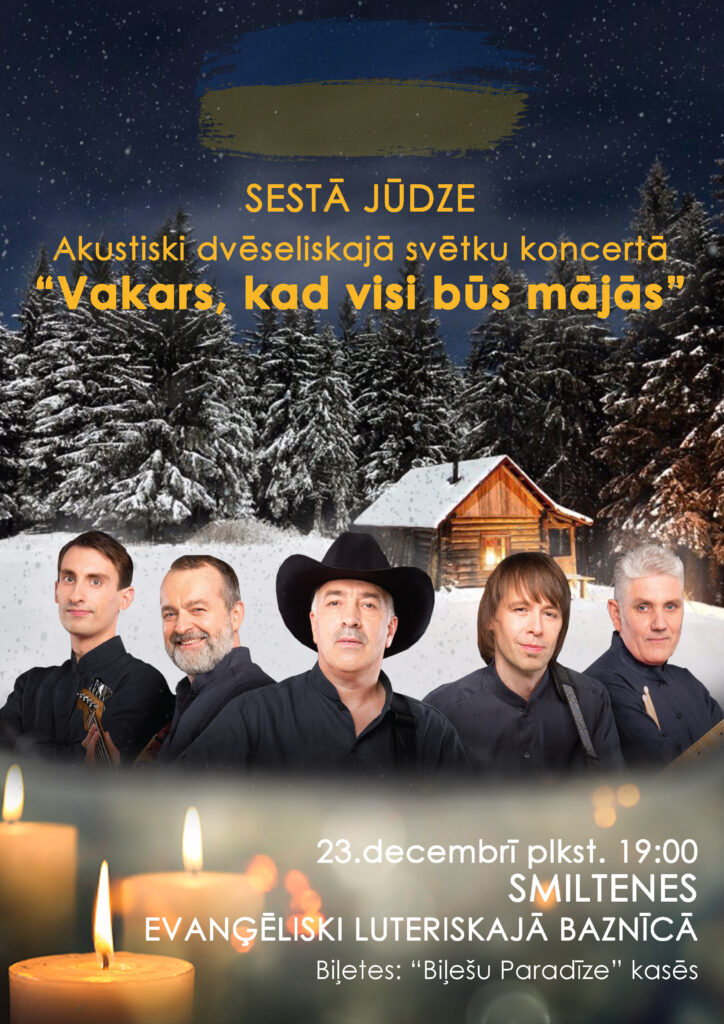 Tuvojoties gada ticības un cerības piepildītākajiem svētkiem, Latvijas titulētākā kantrimūzikas grupa “Sestā Jūdze” dodas pie saviem klausītājiem Smiltenē ar Ziemassvētku koncertu “Vakars, kad visi būs mājās”. Koncerts norisināsies 23. decembrī plkst. 19:00 Smiltenes evanģēliski luteriskajā baznīcā un biļetes uz to iespējams iegādāties “Biļešu Paradīze” kasēs.