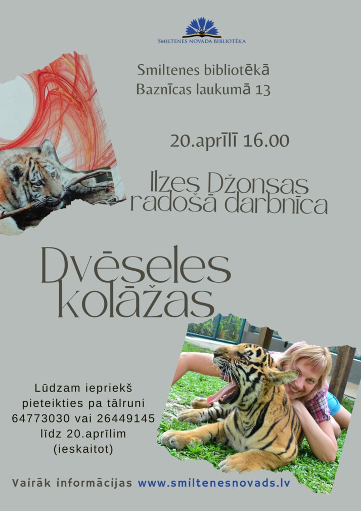 Smiltenes bibliotēka aicina interesentus uz Ilzes Džonsas vadīto radošo darbnīcu “Dvēseles kolāžas”, sevis izzinošu un, zināmā mērā, arī terapeitisku nodarbi.