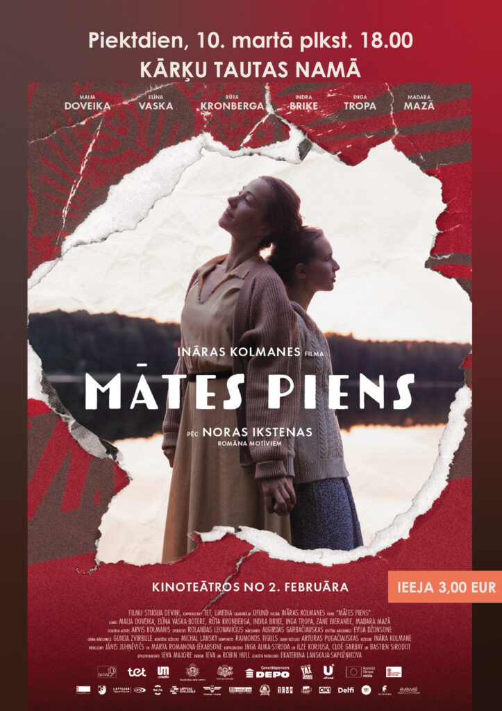 10.martā plkst. 18.00 Kāŗku tautas namā tiks izrādīta Ināras Kolmanes spēlfilma “Mātes Piens”.