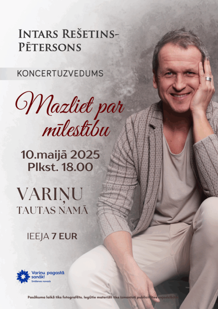 Variņos 10.maijā plkst. 18.00 Intara Rešetina koncertuzvedums “Mazliet par mīlestību”. Ieeja 7EUR