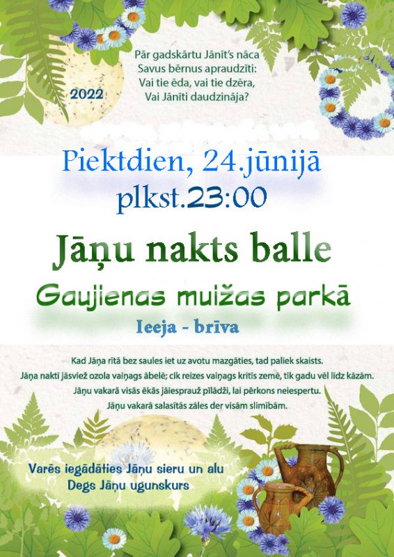 24.jūnijā plkst. 23.00 Gaujienas muižas parkā ’’Jāņu balle’’ kopā ar grupu “Gregs un Draugi”.