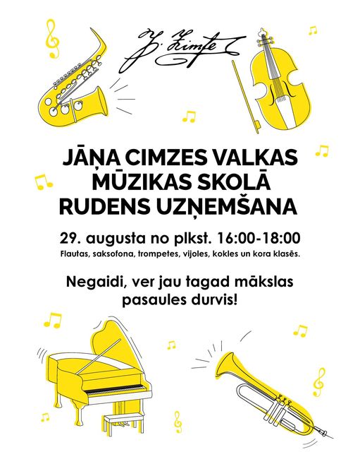 Ceturtdien, 29. augustā, no plkst. 16 līdz 18 Jāņa Cimzes Valkas Mūzikas skolā Semināra ielā 25 notiks jaunu audzēkņu rudens uzņemšana 2024./2025. mācību gadam.