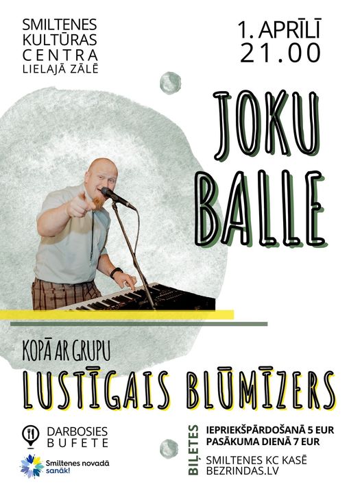Biļetes: iepriekšpārdošanā 5 EUR, pasākuma dienā 7 EUR. Smiltenes KC kasē vai bezrindas.lv https://www.bezrindas.lv/lv/joku-balle/11810/
