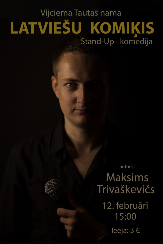 Sestdien, 12. februārī stand-up komiķis Maksims Trivaškevičs Vijciema Tautas nama apmeklētājus iepriecinās ar soloprogrammu „Latviešu komiķis”, kura 2019. gada novembrī piedzīvoja pirmizrādi, un tās ietvaros autors stundas garumā stāstīs savus jaunākos labākos jokus.