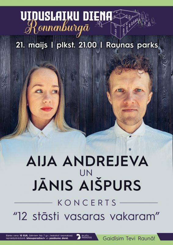 Viduslaiku dienas kulminācija būs vakara koncerts, kurš ne vien būs ceļojums mākslinieku stāstos un dzīvēs, bet arī kārtējais ceļojums Raunas pilsētvidē – 21. maijā, plkst. 21.00, atklāsim kā skan Raunas pils parks!