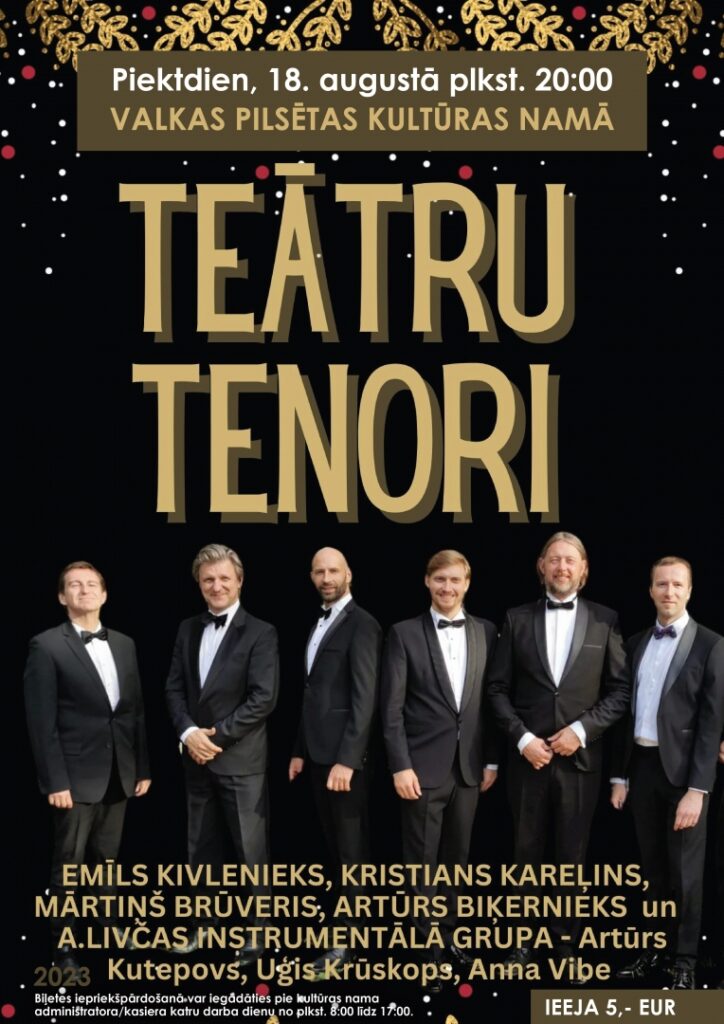 Valkas kultūras namā 18. augustā plkst. 20.00 koncerts “Teātru tenori”.