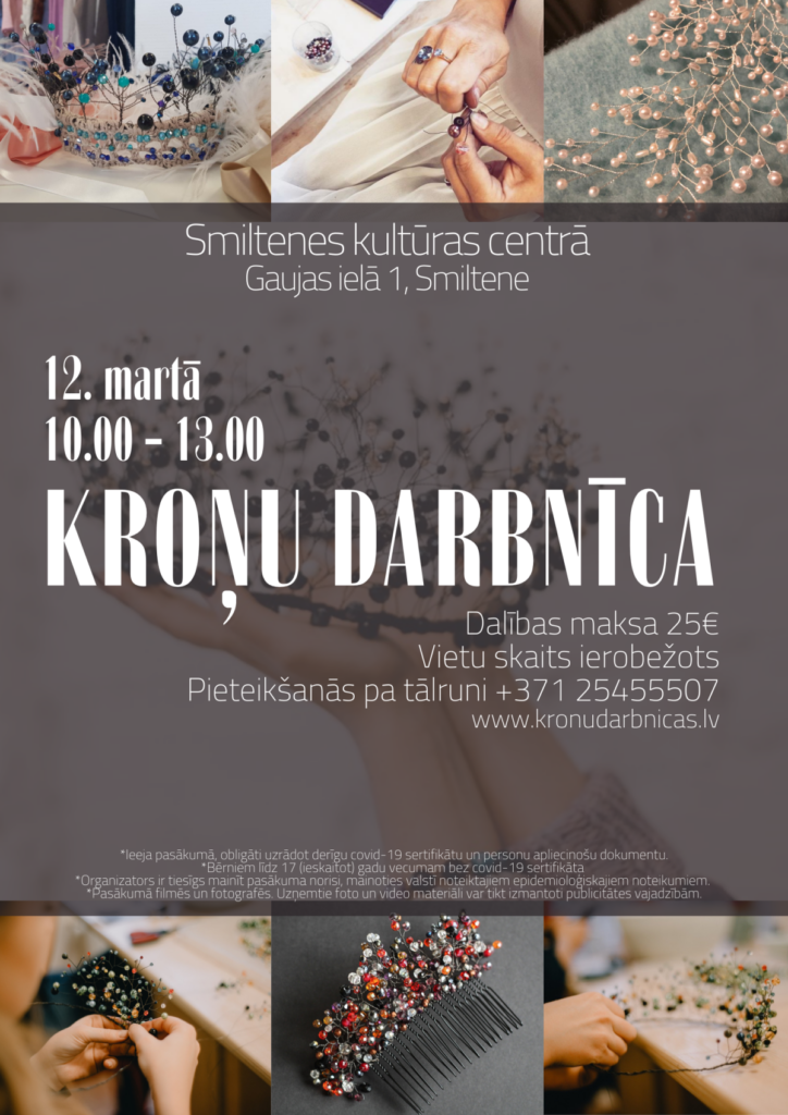 12.martā no pulksten 10.00 līdz 13.00 Smiltenes kultūras centra foajē norisināsies kroņu darbnīca. To vadīs meistare no radošās darbnīcas “Kroņu darbnīcas” (www.kronudarbnicas.lv) meistare.