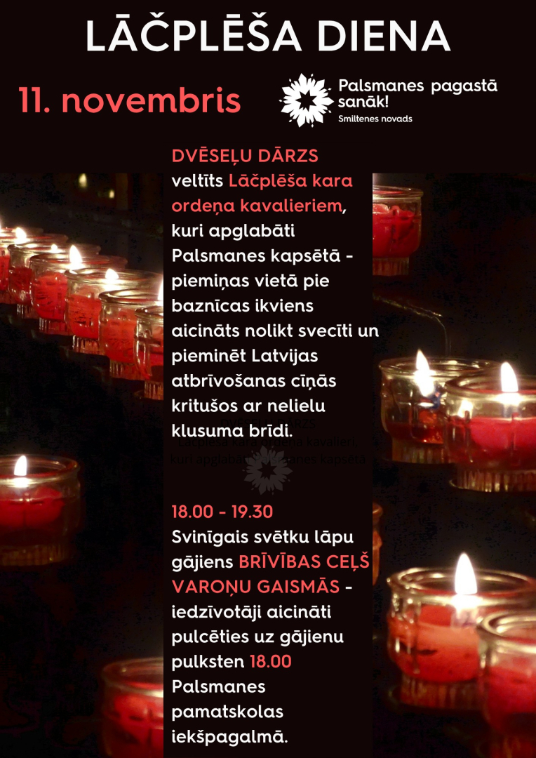 - novembrī, Lāčplēša dienā, Palsmanē iedegsim gaismu par brīvību!