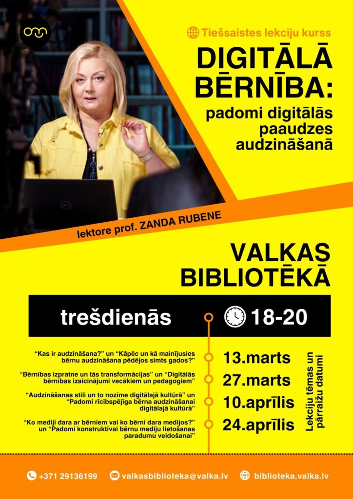 Prof. Zandas Rubenes vadītā tiešsaistes nodarbību kursa “Digitālā bērnība: padomi digitālās paaudzes audzināšanā” lekcijas “Ko mediji dara ar bērniem vai ko bērni dara medijos?” un “Padomi konstruktīvai bērnu mediju lietošanas paradumu veidošanai”.
