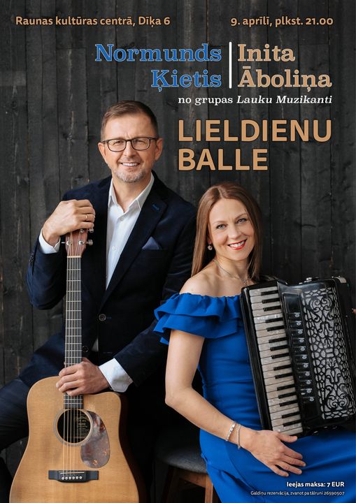 9.aprīlī plkst. 21.00 Raunas pagasta Kultūras centrā balle kopā ar Normundu Ķieti un Initu Āboliņu no grupas ,,Lauku muzikanti”.
