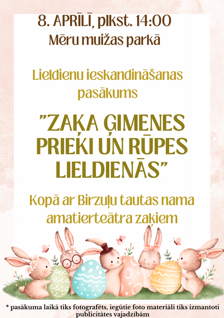 Birzuļu bibliotēka kopā ar Birzuļu tautas nams aicina gan lielus, gan mazus uz Lieldienu ieskandināšanas pasākumu “Zaķa ģimenes prieki un rūpes Lieldienās” Mēru muižas parkā.