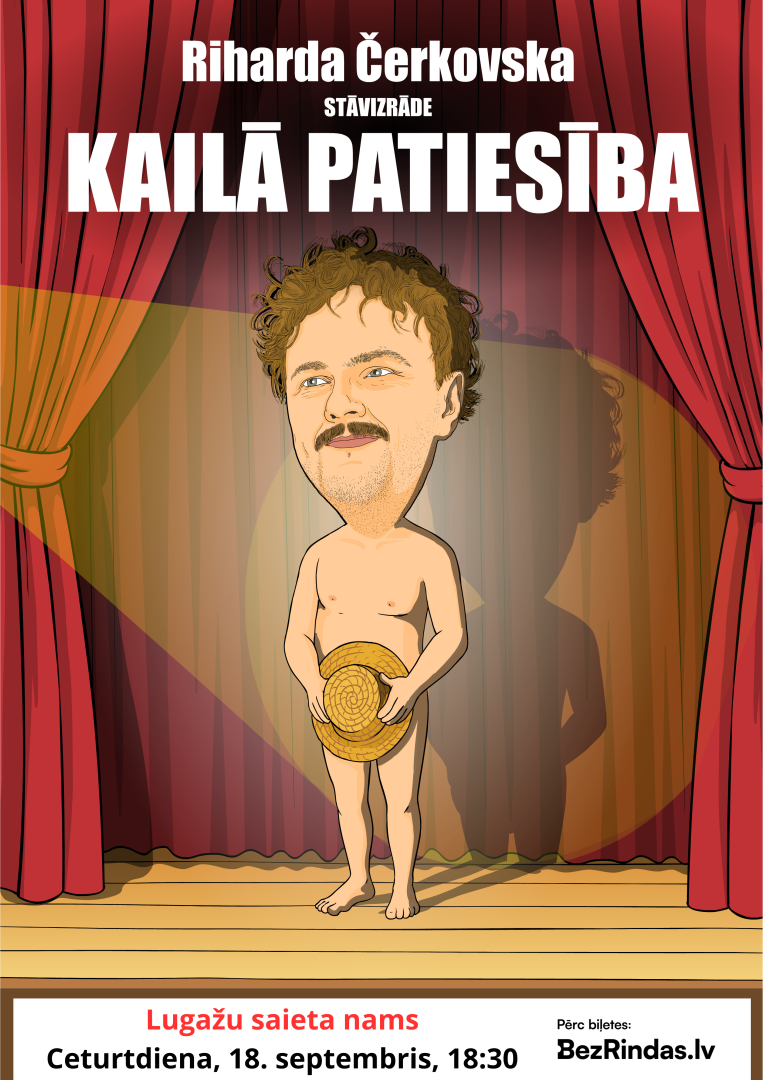 18. septembrī plkst. 18.30 Saieta namā “Lugažu muiža” Rihards Čerkovskis aicina uz jauno stāvizrādi “Kailā patiesība”.