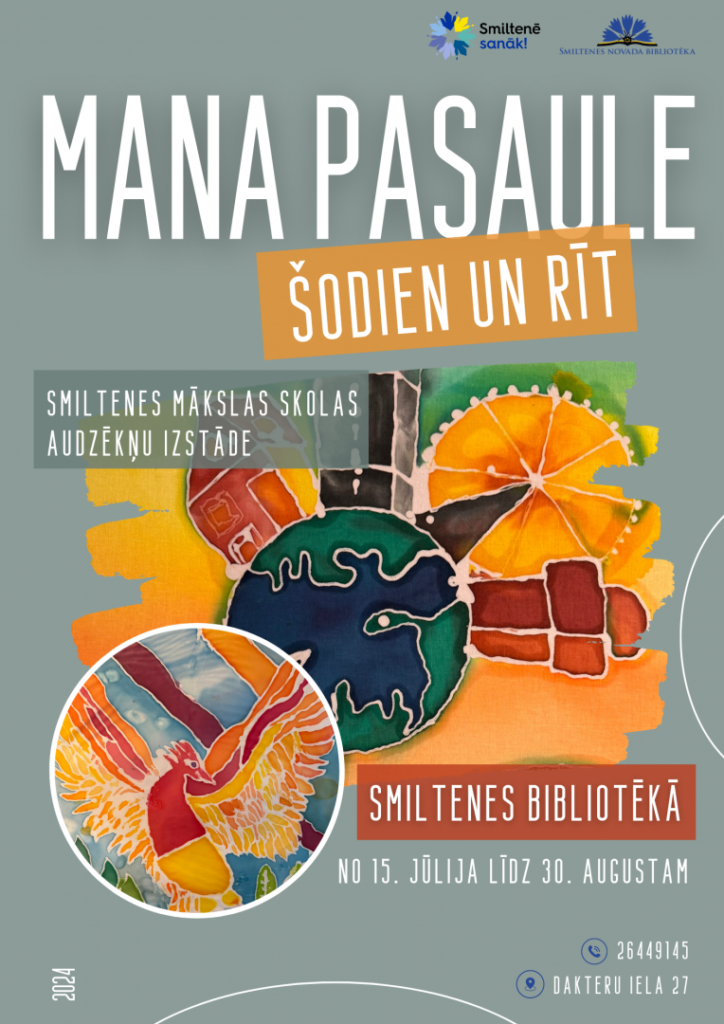 No 15. jūlija līdz 30. augustam Smiltenes bibliotēkā Dakteru ielā 27 apmeklētāji varēs baudīt Smiltenes Mākslas skolas audzēkņu  radīto košo un krāsaino pasauli. Apskatei tiek piedāvāta Smiltenes Mākslas skolas šī gada absolventu tekstiltehnikas darbu izstāde “Mana pasaule – šodien un rīt”.