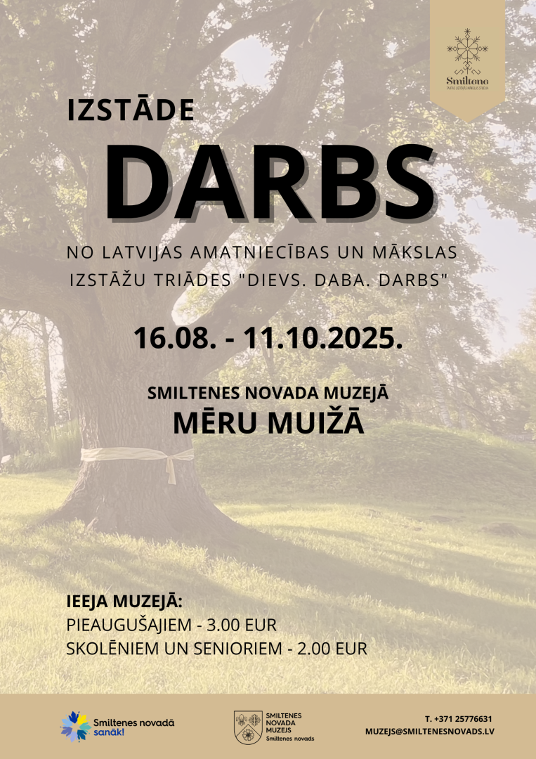 Latvijas amatniecības un mākslas izstāde “Darbs”, noslēdzot izstāžu triādi “Dievs. Daba. Darbs”, rāda vairāk nekā 800 lietišķās mākslas meistardarbu no 450 autoriem. Saglabāt savu nacionālo kodu un tautas tradīcijas, meklēt iedvesmu Latvijas dabā un cilvēkos, kā arī latviskajās pamatvērtībās – tā var izteikt izstāžu triādes “Dievs. Daba. Darbs” ideju un vēstījumu. Triādes noslēdzošajai izstādei šogad tika saņemts rekordliels pieteikumu skaits, kas pārliecinoši parāda šīs izstādes pieaugošo popularitāti un Latvijas meistaru vēlmi tajā piedalīties. Te no visas Latvijas atceļojušas tekstilijas – austas, šūtas, adītas, tamborētas, celotas, izšūtas, filcētas un vēl citādi darinātas, te māls dzied savu dziesmu krūzēs, vāzēs, šķīvjos, bļodās, svečturos un mākslā, te koks izpaudies pinumos un virpā, un šo sarakstu varētu turpināt vēl un vēl. Tautas lietišķās mākslas studijas no visas Latvijas, kā arī individuāli meistari atainojuši darba dziļāko, no senlaikiem ielikto jēgu latviešu nācijas būtībā, katra cilvēka eksistencē un ikdienas ritējumā, kā arī tautasdziesmu vēstījumā.