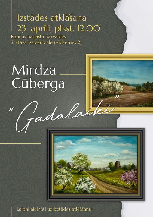 Tā saka Mirdza Cūberga gaidot Jūs visus uz izstādes atklāšanu 23.aprīlī, plkst. 12.00, Raunas pagasta 2.stāva zālē.
