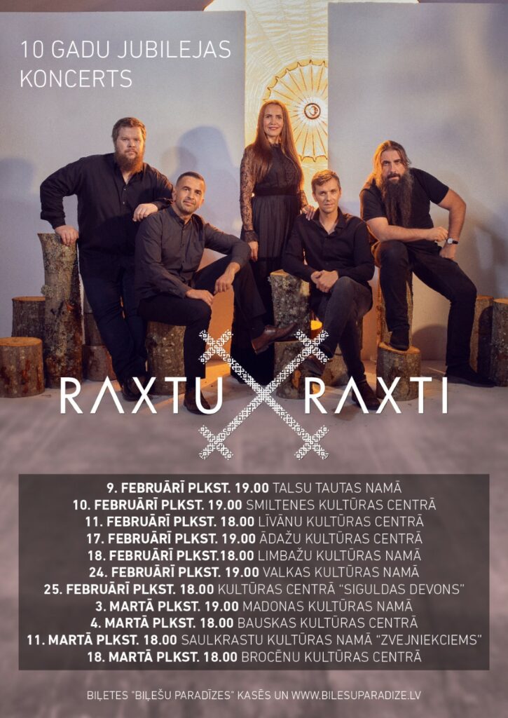 Piektdien, 24. februārī plkst.19.00 Valkas pilsētas kultūras nama lielajā zālē  muzikālā apvienība “RAXTU RAXTI” aicina uz 10 gadu jubilejas koncertu.