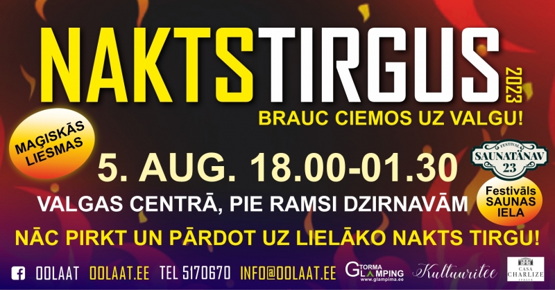 Nakts tirgus notiek 4 reizes gadā, 4 dažādās aizraujošās un vēsturiskās vietās Igaunijā, šogad tas norisināsies arī Valgā!