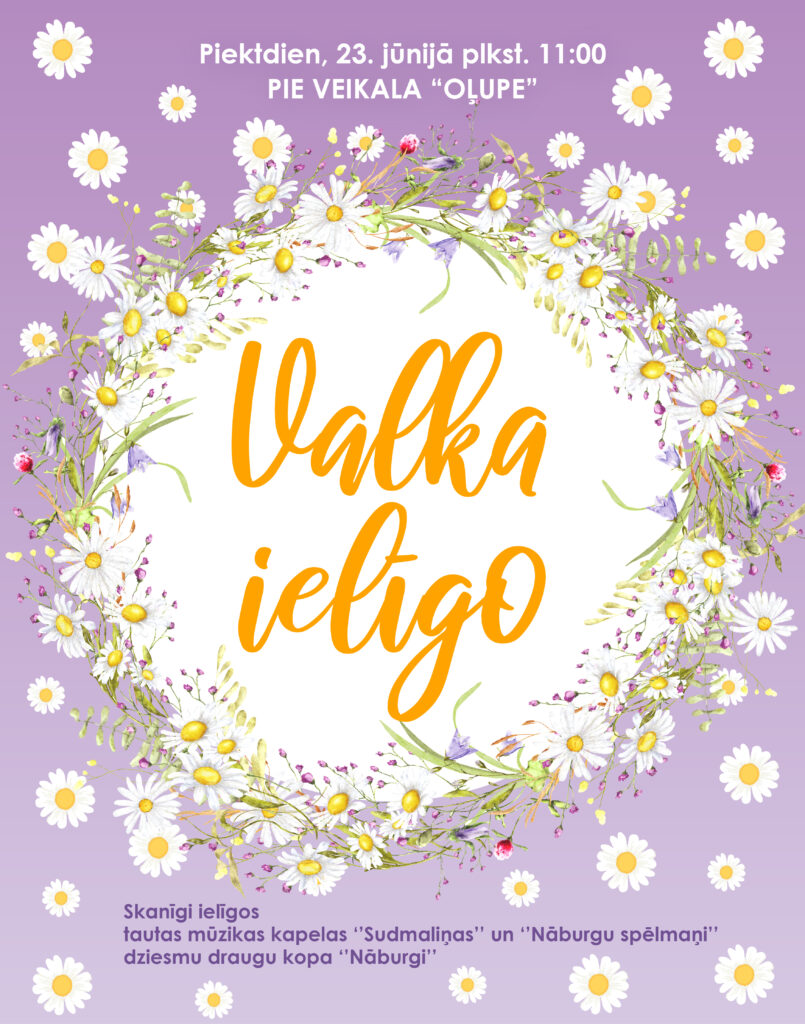 23. jūnijā plkst. 11.00 Valkā pie veikala “Oļupe” aicinām ikvienu jestri iesākt dienu kopā ar tautas mūzikas kapelu “Sudmaliņas”, dziesmu draugu kopu “Nāburgi” un tautas mūzikas kapelu “Nāburgu spēlmaņi”.
