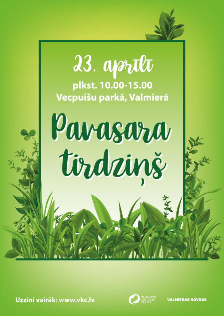 Esam sagaidījuši pavasari! Katru dienu saule silda arvien vairāk, zied pirmie pavasara ziedi un sākušies dārza darbi. Pienācis laiks tikties “Pavasara tirdziņā”! Aicinām Tevi 23. aprīlī no plkst. 10.00 līdz plkst. 15.00 uz Vecpuišu parku, kur pulcēsies vairāk nekā 120 Valmieras un citu novadu mājražotāji un amatnieki. Viņi cels gadā savus gardos, skaistos, praktiskos un izlolotos darinājumus.