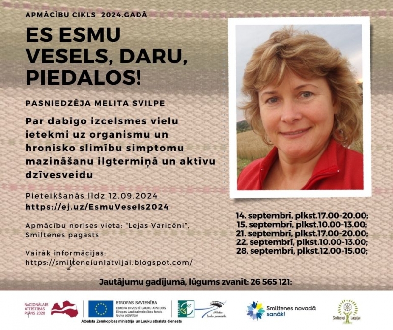 Biedrība “Smiltenei un Latvijai” aicina vairāk uzzināt parar dabīgo izcelsmes vielu ietekmi uz organismu un hronisko slimību simptomu mazināšanu ilgtermiņā un aktīvu dzīvesveidu kopā ar Melitu Svilpi.