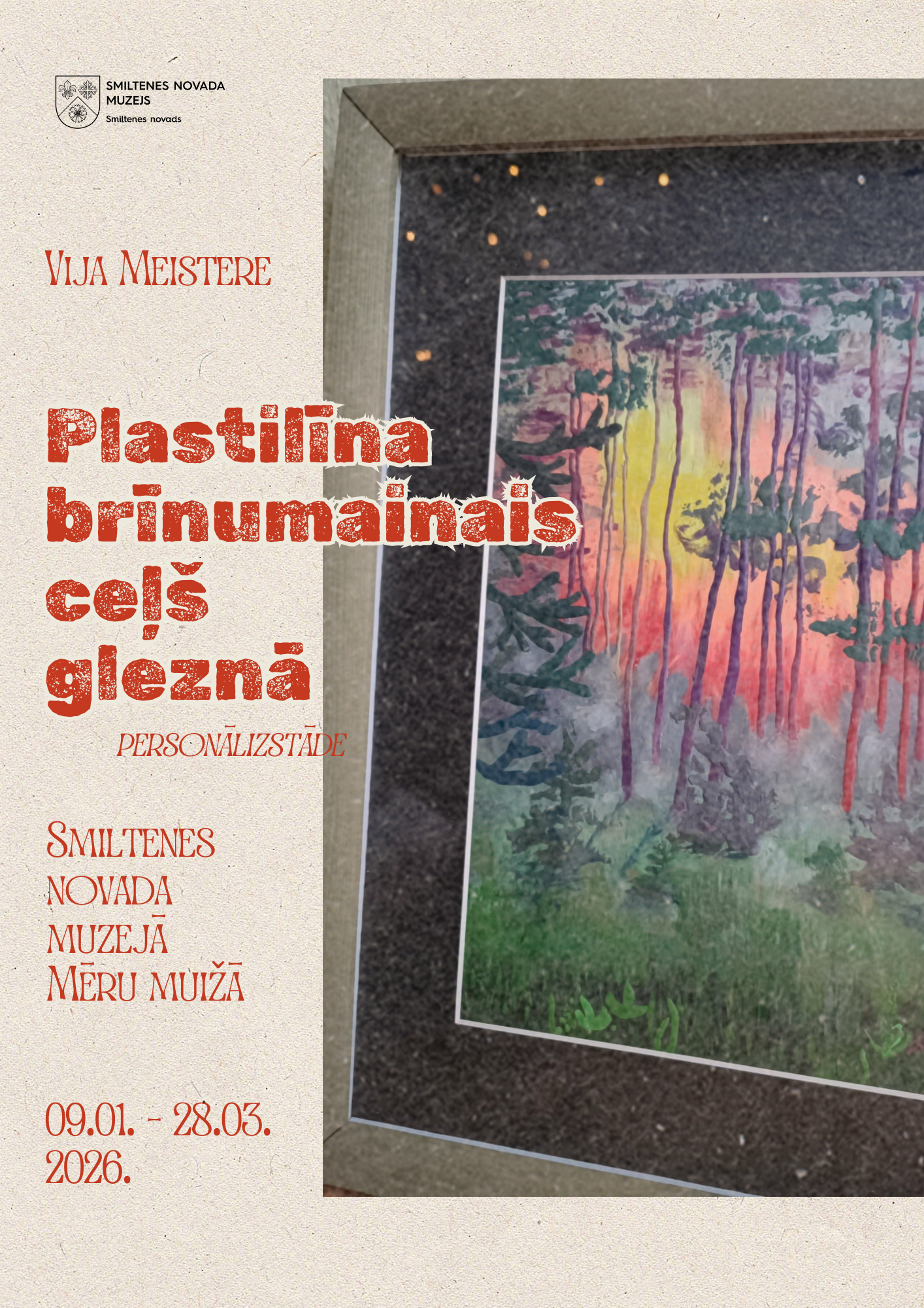 No 9. janvāra Smiltenes novada muzejā Mēru muižā atvērta vietējās mākslinieces Vijas Meisteres personālizstāde pavisam netradicionālā gleznošanas tehnikā – plastilīnā. Prasmīgi izveidotās krāsu un ēnu saspēles Vijas Meisteres plastilīna gleznās dzīvo savu neatkarīgu dzīvi, vienlaikus atainojot dabas un apdzīvoto vietu ainavas tuvākā un tālākā apkārtnē, kā arī pastkartēs vai fotogrāfijās, kuras kļuvušas par mākslinieces iedvesmas avotu.