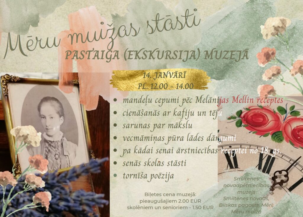 14.janvārī Smiltenes novadpētniecības muzejs Mēru muižā aicina uz publisko ekskursiju “Pastaiga muzejā”. Ekskursijas sākums – pulksten 12.00, tā ilgs aptuveni pusotru stundu.