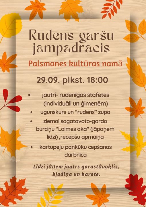 Palsmanes kultūras namā 29. septembrī plkst. 18.00