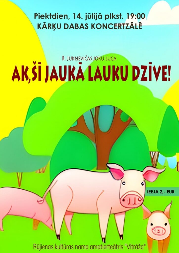 Piektdien, 14. jūlijā plkst. 19.00 Kārķu Dabas koncertzālē viesojas Rūjienas kultūras nama amatierteātris “ Vitrāža” ar Baibas Jukņevičas joku lugu “ Ak, šī jaukā lauku dzīve!”