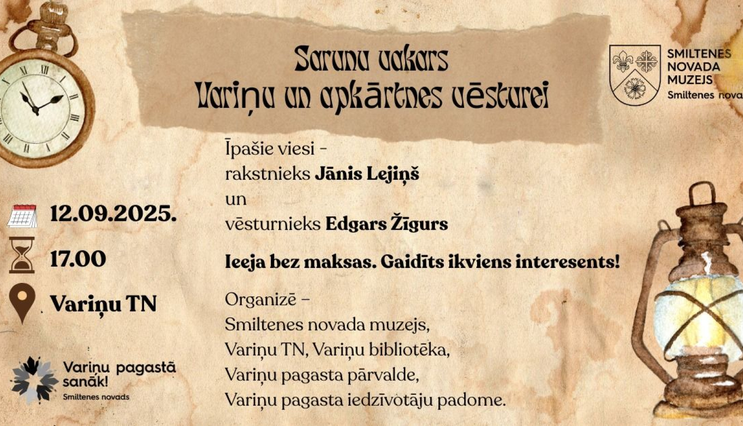 Organizē – Smiltenes novada muzejs, Variņu TN, Variņu bibliotēka, Variņu pagasta pārvalde, Variņu pagasta iedzīvotāju padome.