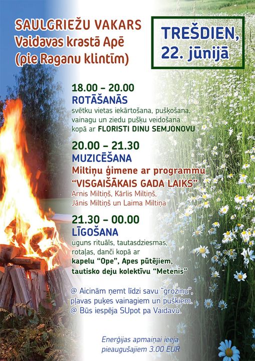 Vasaras saulgriežus jau vairākus gadus Apē svinam pie dabas.