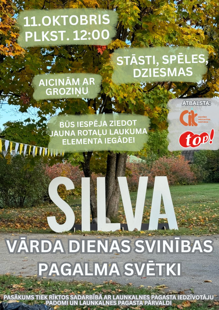 Silvas iedzīvotāji sadarbībā ar Launkalnes pagasta pārvaldi un iedzīvotāju padomi organizē Silvas vārda dienas svinības – pagalma svētkus. Tevi gaida: