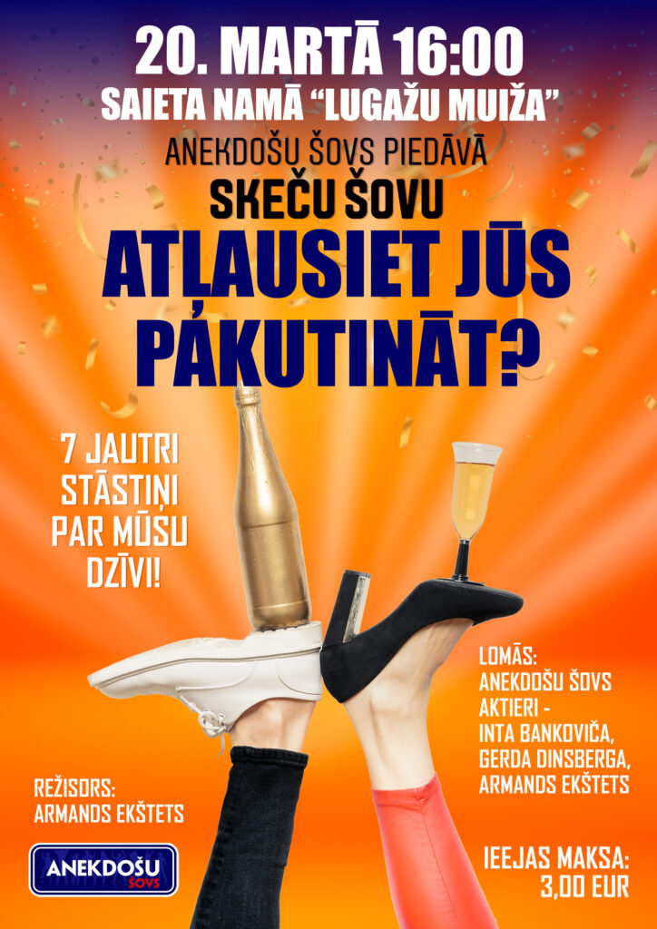 Protams vakarā gaitā vēl mēs izskatīsim daudz tēmas, kuras mums šodien šķiet tik aktuālas, kā piemēram – Kā ātrāk tikt pie viena miljona eiro? Bet par tām jūs uzzināsiet, ja atnāksiet uz mūsu skeču šovu „ATĻAUSIET JŪS PAKUTINĀT?”